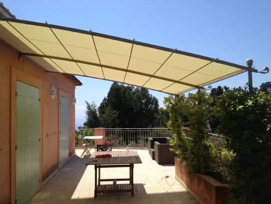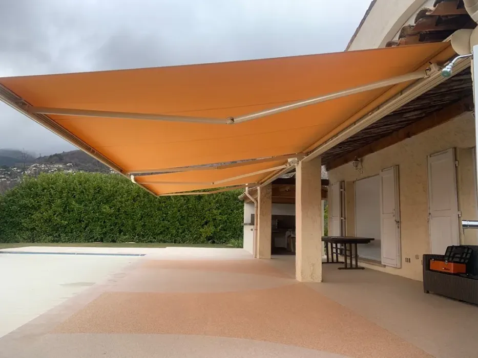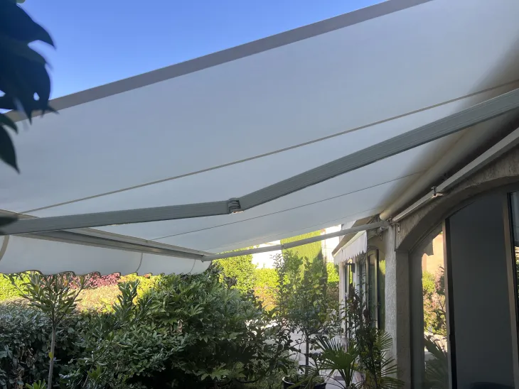 Les stores que nous installons sont spécialement sélectionnés pour résister au climat méditerranéen exigeant. Les toiles de qualité supérieure présentent une excellente résistance aux UV intenses et conservent leur couleur malgré l'exposition prolongée au soleil. Parallèlement, l'armature en aluminium résiste parfaitement à la corrosion saline de notre région côtière. Toutefois, nous vous recommandons de replier votre store lors des épisodes de vent fort ou d'orages.